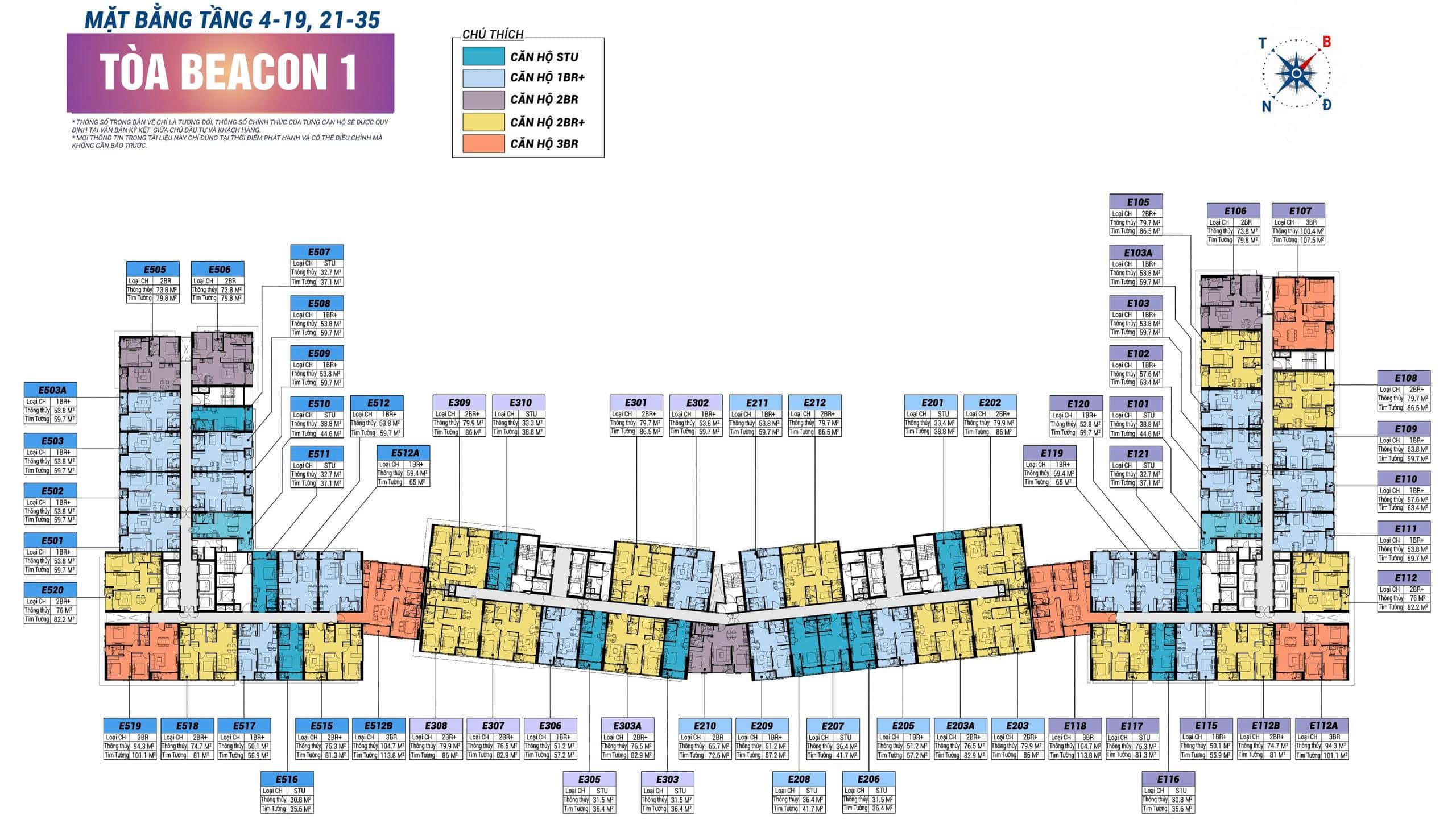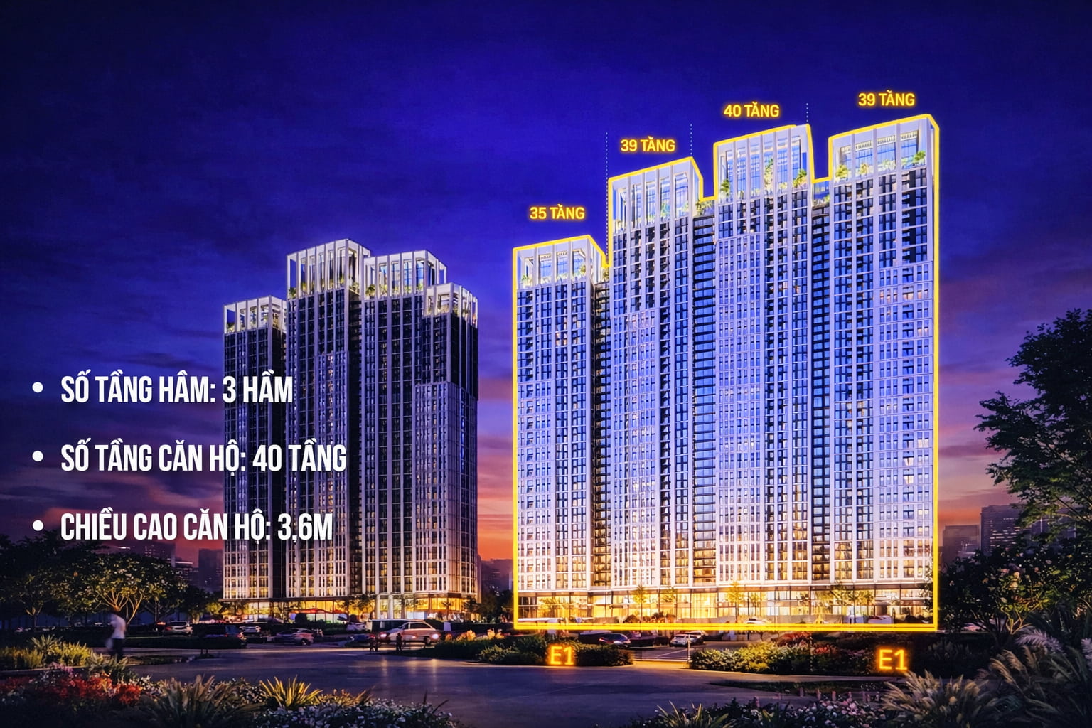 Căn hộ hải đăng Becon – tòa tháp E2 có tổng 2.211 căn hộ với đa dạng loại hình (Studio – 1PN – 2PN – 3PN – Duplex). Điểm nhấn độc bản của dự án chính là thiết kế trần cao lên đến 3,6m cho các căn hộ sở hữu lâu dài, tạo nên một không gian sống thông thoáng, sang trọng và tràn ngập ánh sáng tự nhiên. Bên cạnh đó, nỗi lo về đỗ xe hoàn toàn được xóa bỏ với hệ thống 3 tầng hầm rộng lớn, đảm bảo sự thuận tiện và an tâm tuyệt đối cho mọi cư dân.
