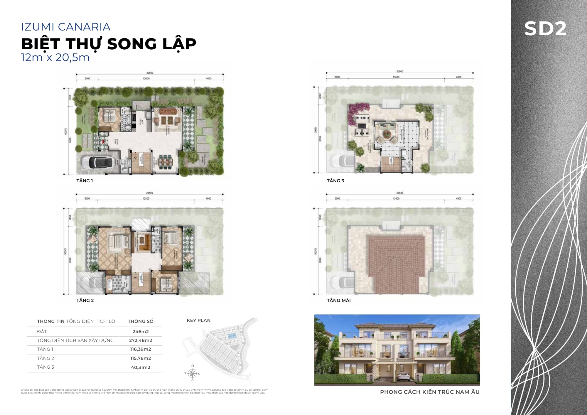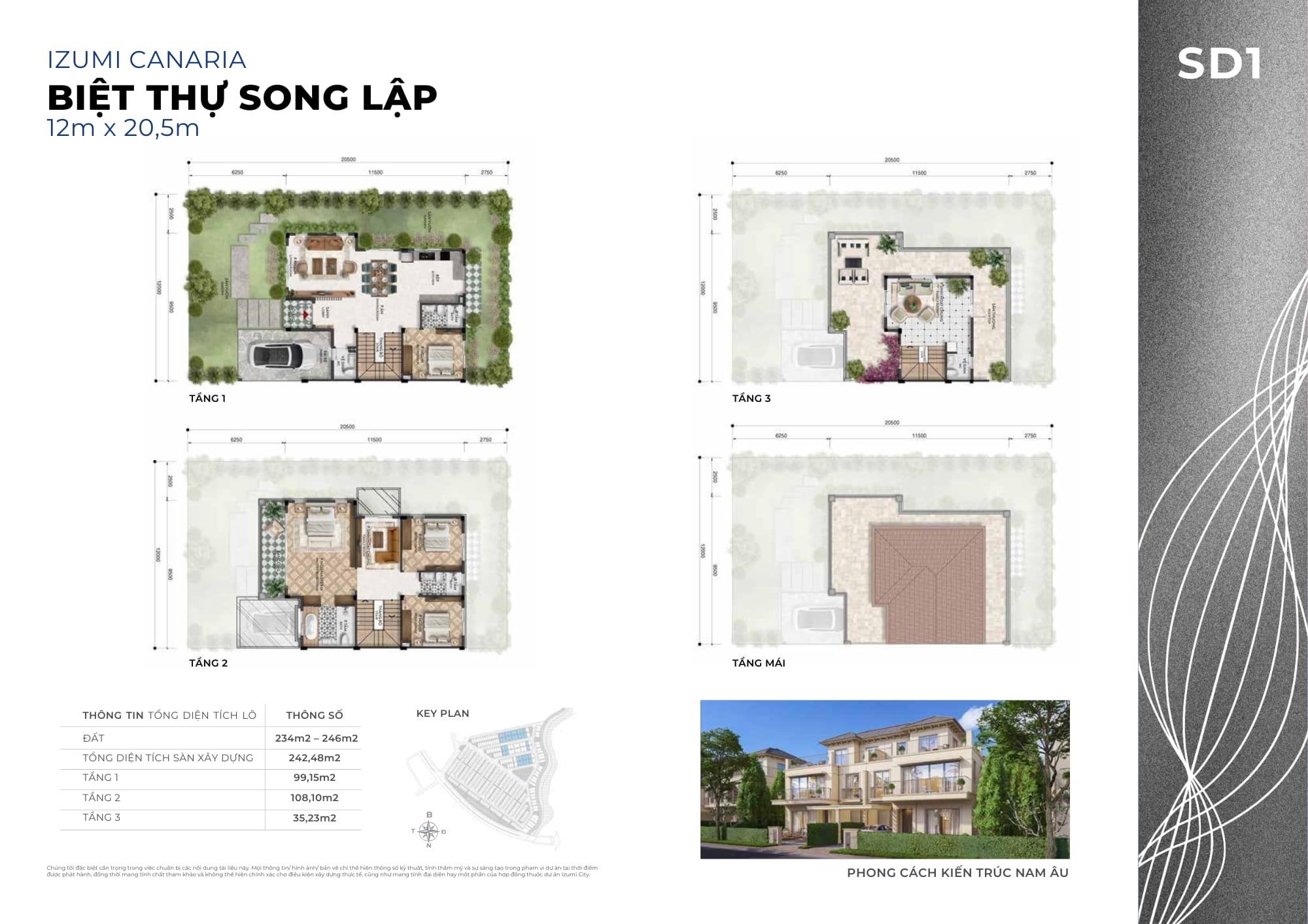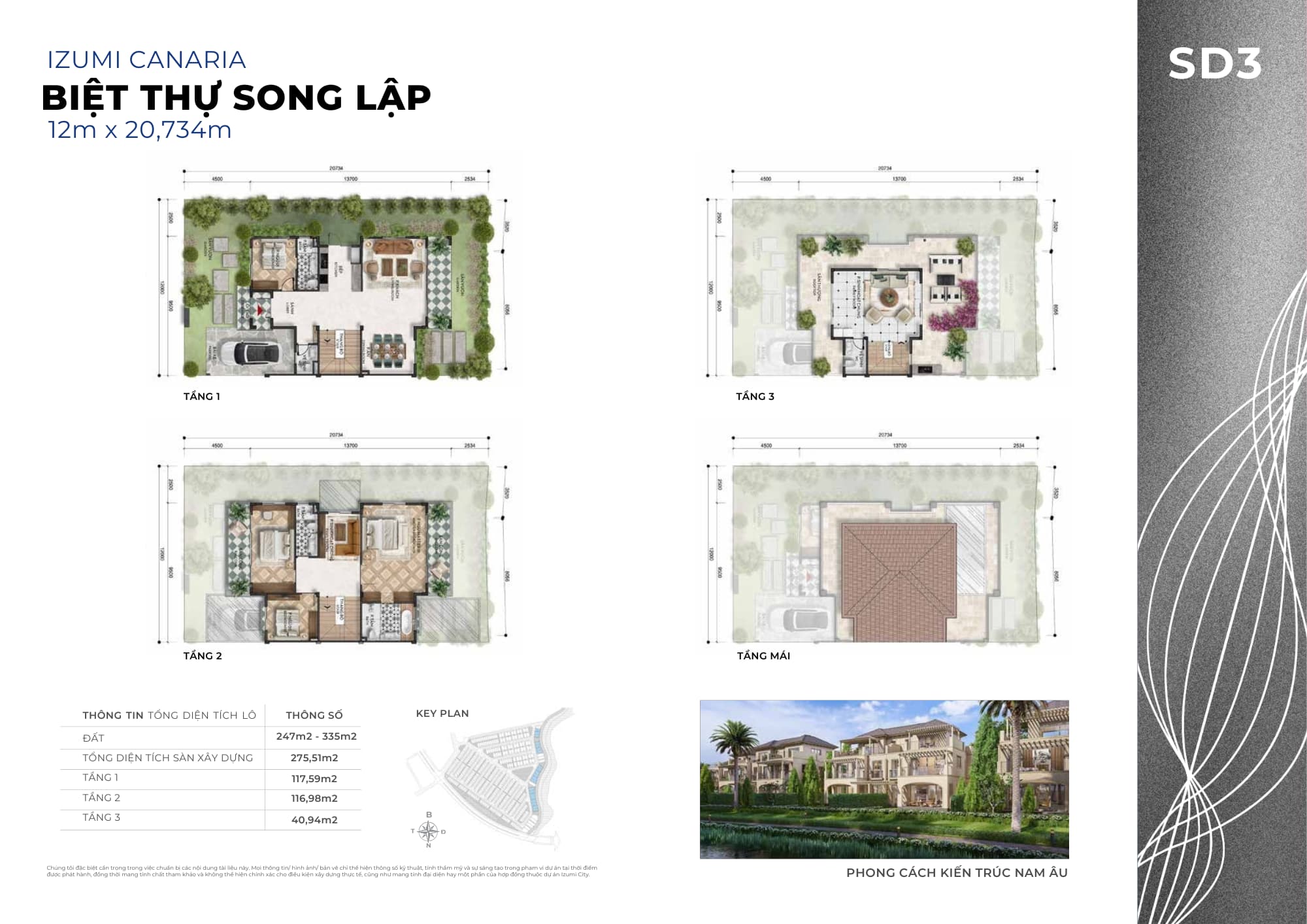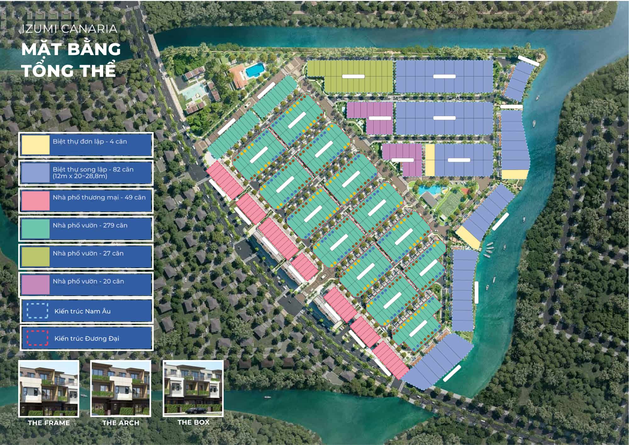 Izumi Canaria được định vị là “Phố vườn – đường sông liền kề”, thiên về không gian sống thấp tầng – xanh – riêng tư.