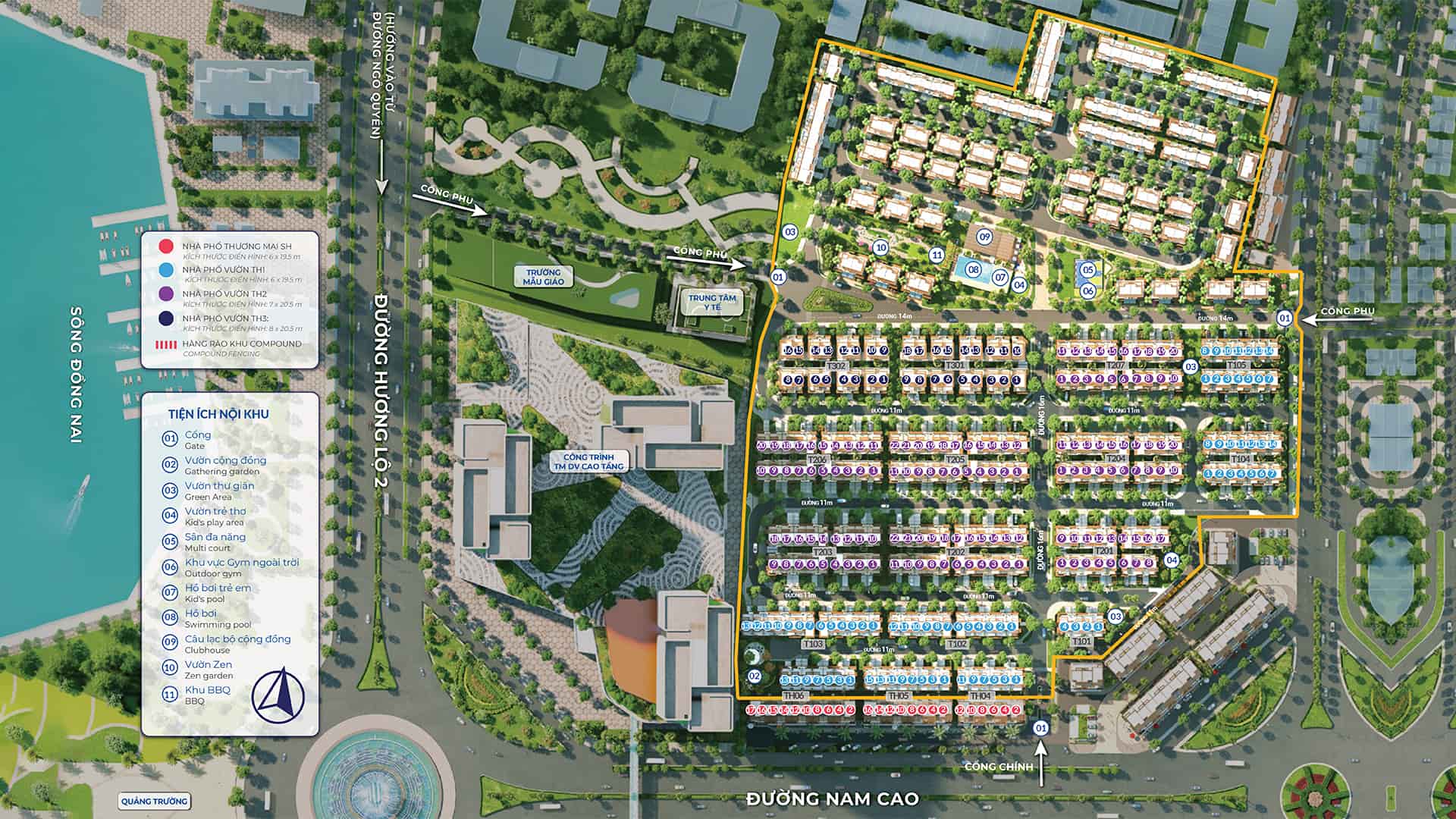 – Khu nhà ở thấp tầng: gồm nhà phố, biệt thự song lập và biệt thự đơn lập, đáp ứng nhu cầu an cư lâu dài.