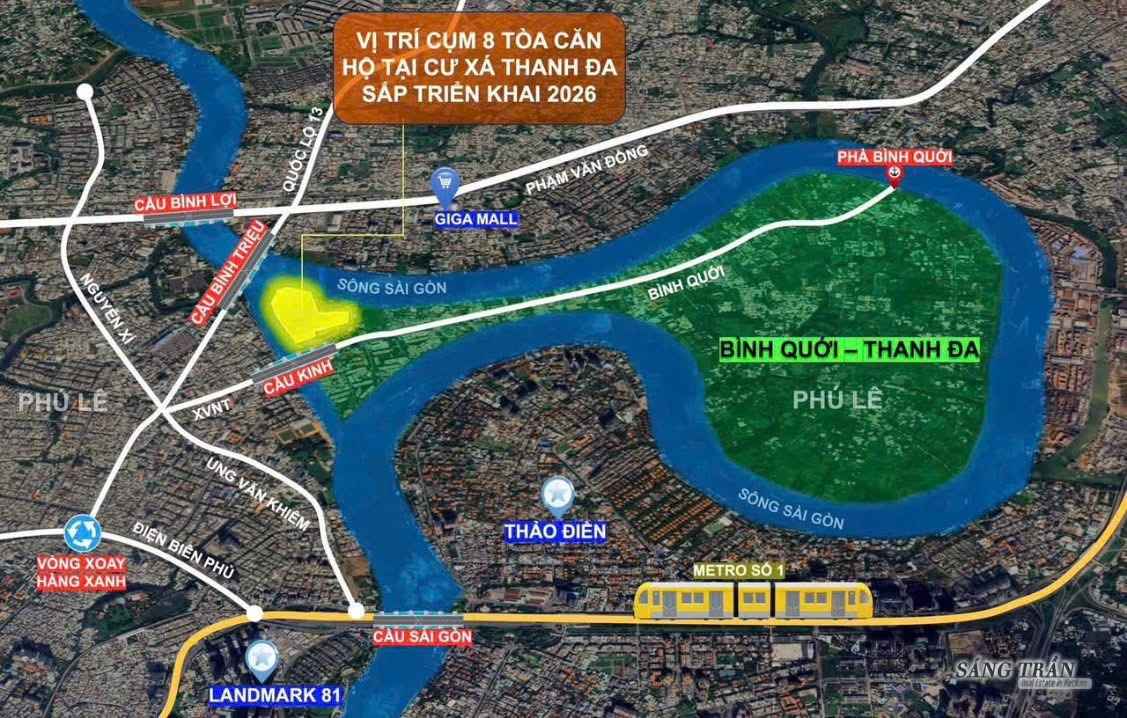 Bán đảo Thanh Đa là khu vực quy hoạch phát triển đô thị sinh thái ven sông của TP. HCM; việc chính quyền đưa dự án Bình Quới – Thanh Đa vào đấu thầu (11/2025) cho thấy quyết tâm đầu tư hạ tầng lớn. Dự án tiếp giáp sông Sài Gòn, chỉ mất vài phút đến trung tâm Quận 1 và Thủ Thiêm, gần các khu đô thị lớn (Masteri Thảo Điền, Masteri An Phú, M-One Gia Định, Millenium Quận 4…). Với quy mô hiếm hoi, quỹ đất nội đô khan hiếm, và uy tín chủ đầu tư Masterise Homes, dự án được đánh giá có triển vọng tăng giá dài hạn. Quy hoạch dài hạn còn đề cập đến việc xây dựng thêm các cây cầu kết nối bán đảo Thanh Đa với các khu vực lân cận (Cầu Bình Quới, Cầu Bình Quới 1 và 2, Cầu Kinh, Cầu Kinh 2), điều này càng nâng cao giá trị đầu tư.