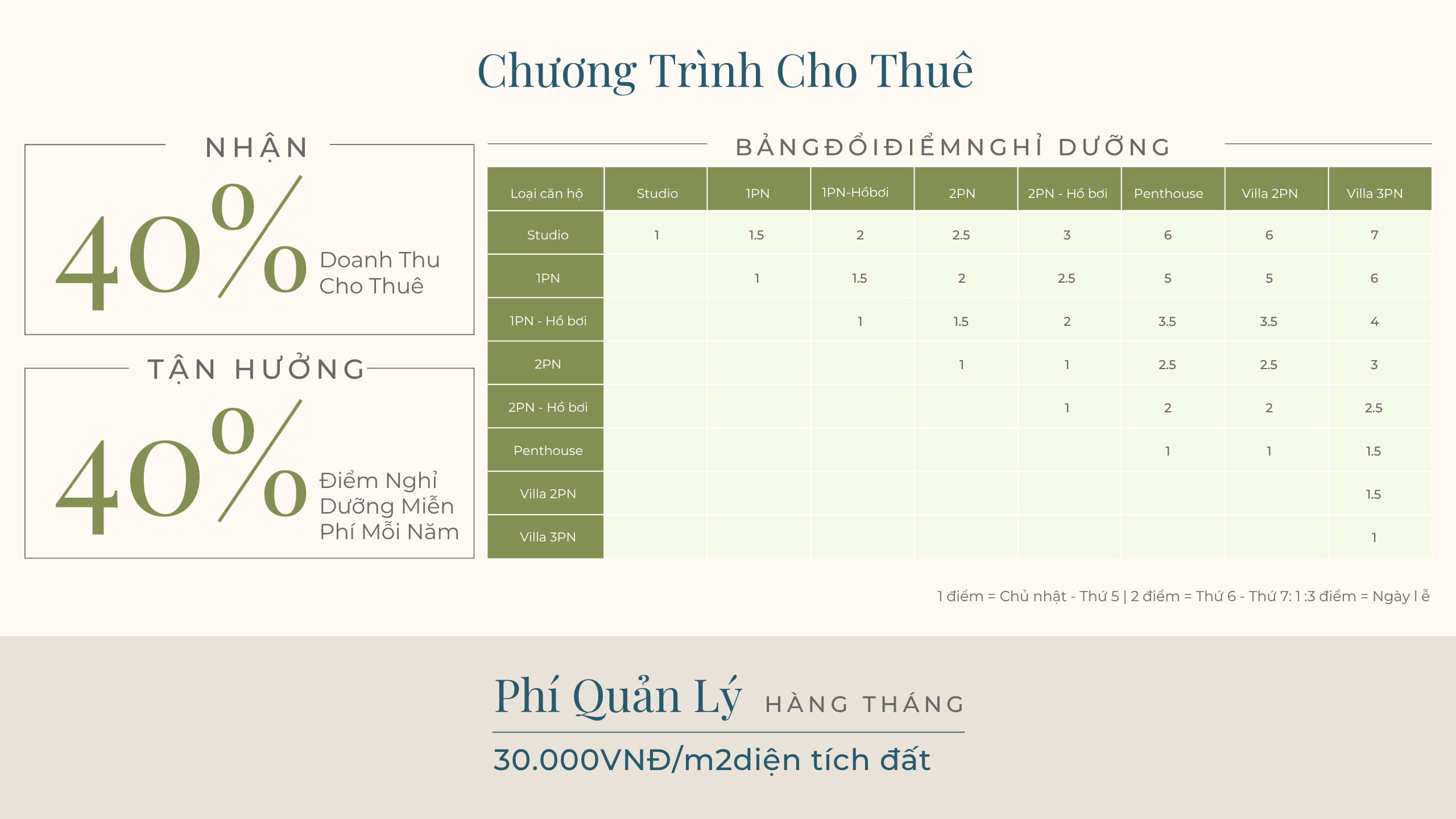 Toàn bộ khu villa được Fusion Hotel Group – thương hiệu nghỉ dưỡng hàng đầu Việt Nam – quản lý và vận hành theo tiêu chuẩn quốc tế.