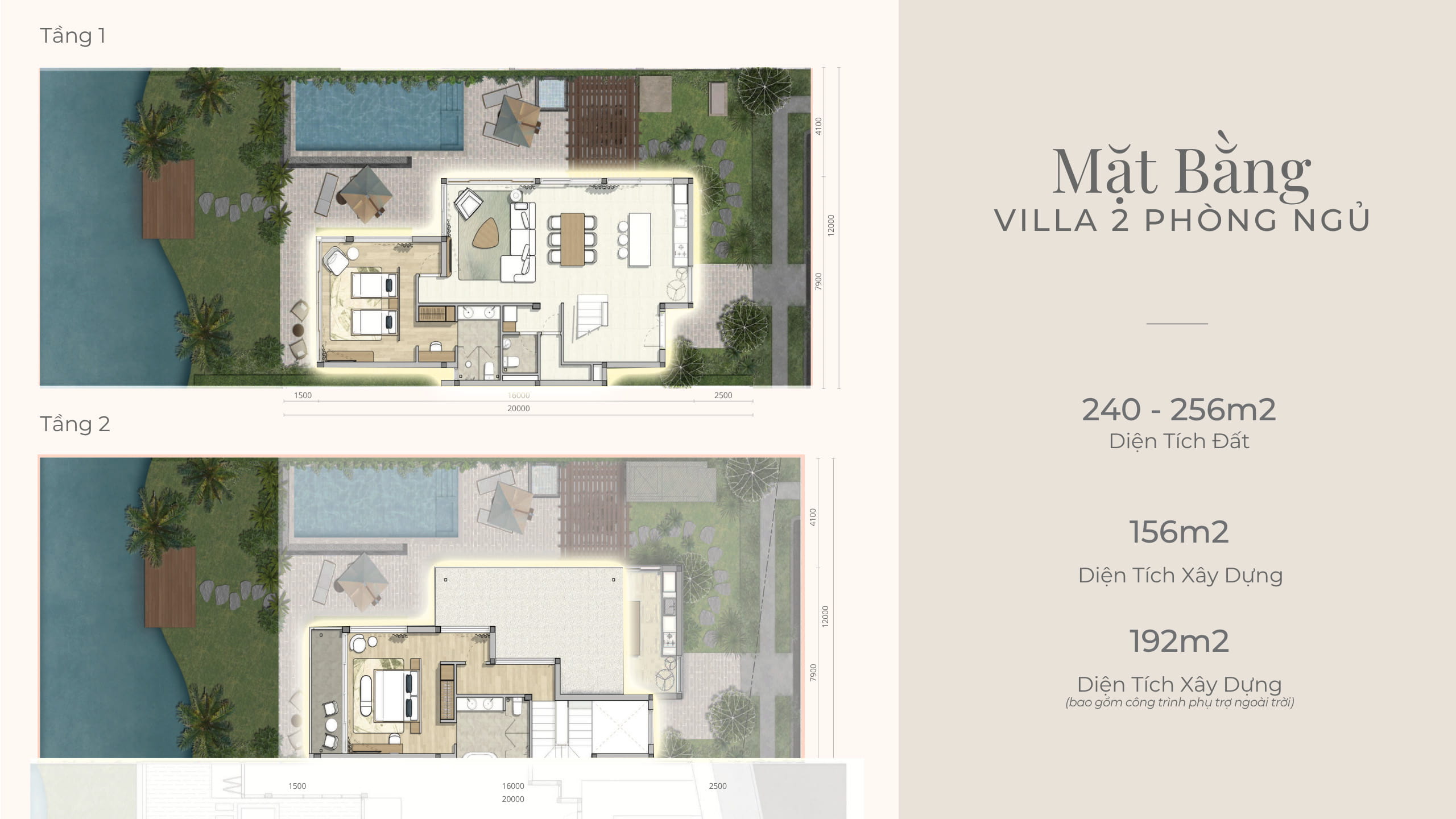 – Villa 2 phòng ngủ (192m2): 12 căn