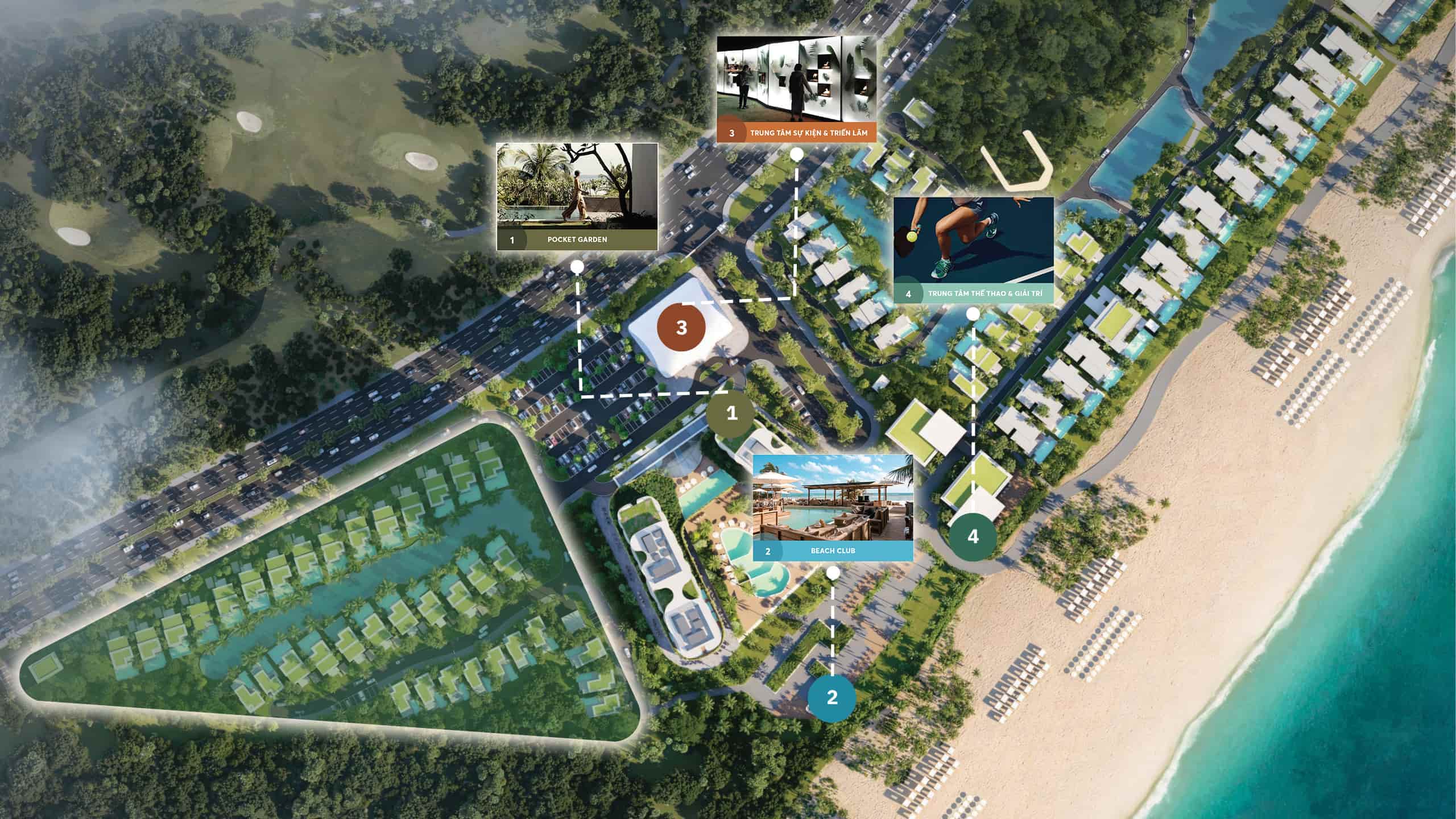 Từ biệt thự Maia, cư dân và du khách dễ dàng kết nối đến chuỗi tiện ích cao cấp trong đại quần thể: công viên nước 3ha, trung tâm giải trí, khu spa & wellness, sân golf chuẩn quốc tế, chuỗi nhà hàng ven biển và khu phố thương mại sầm uất.