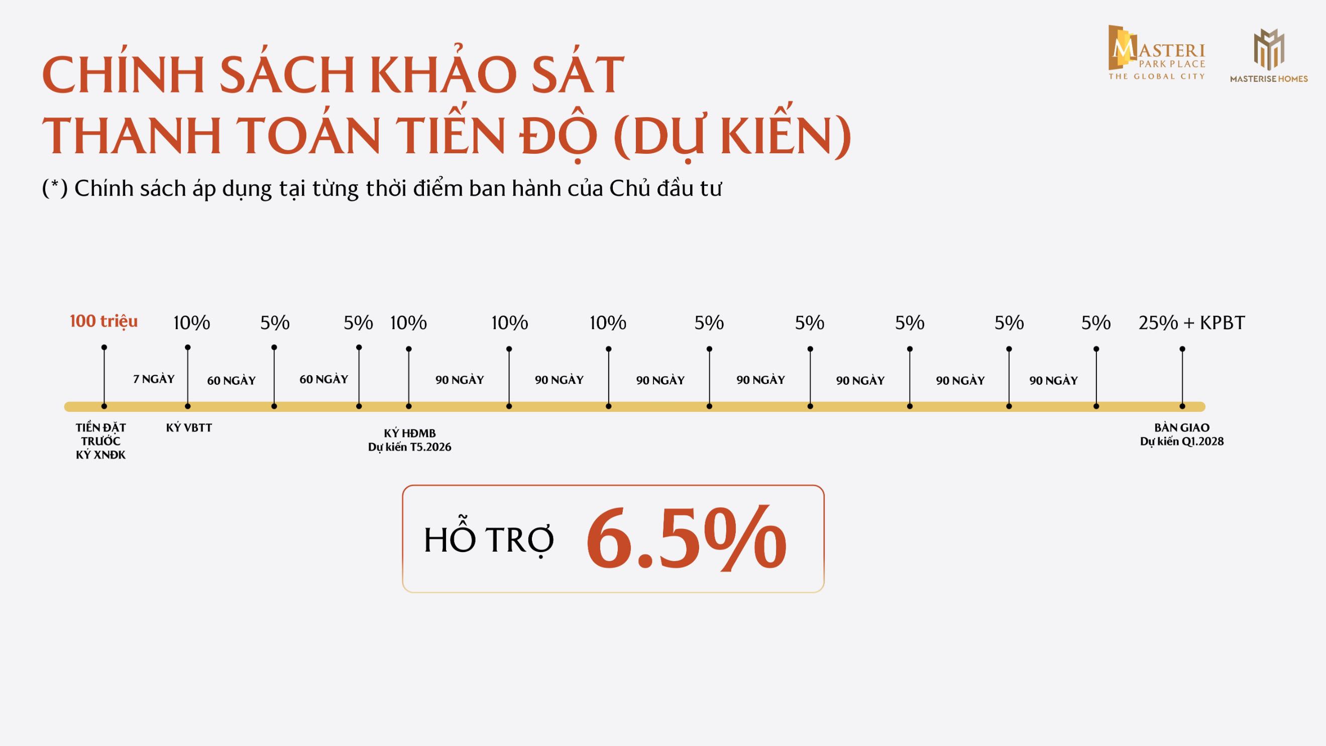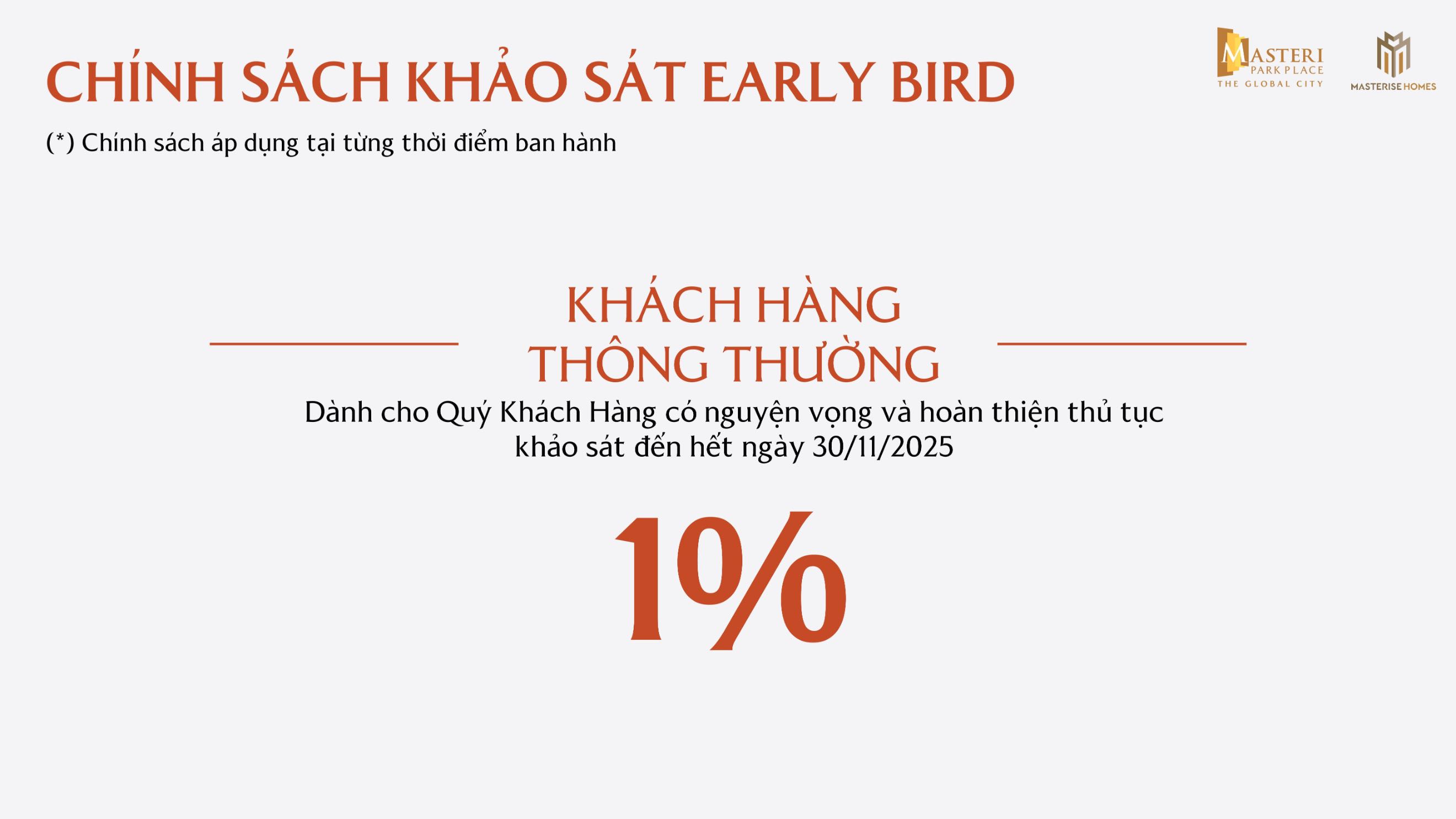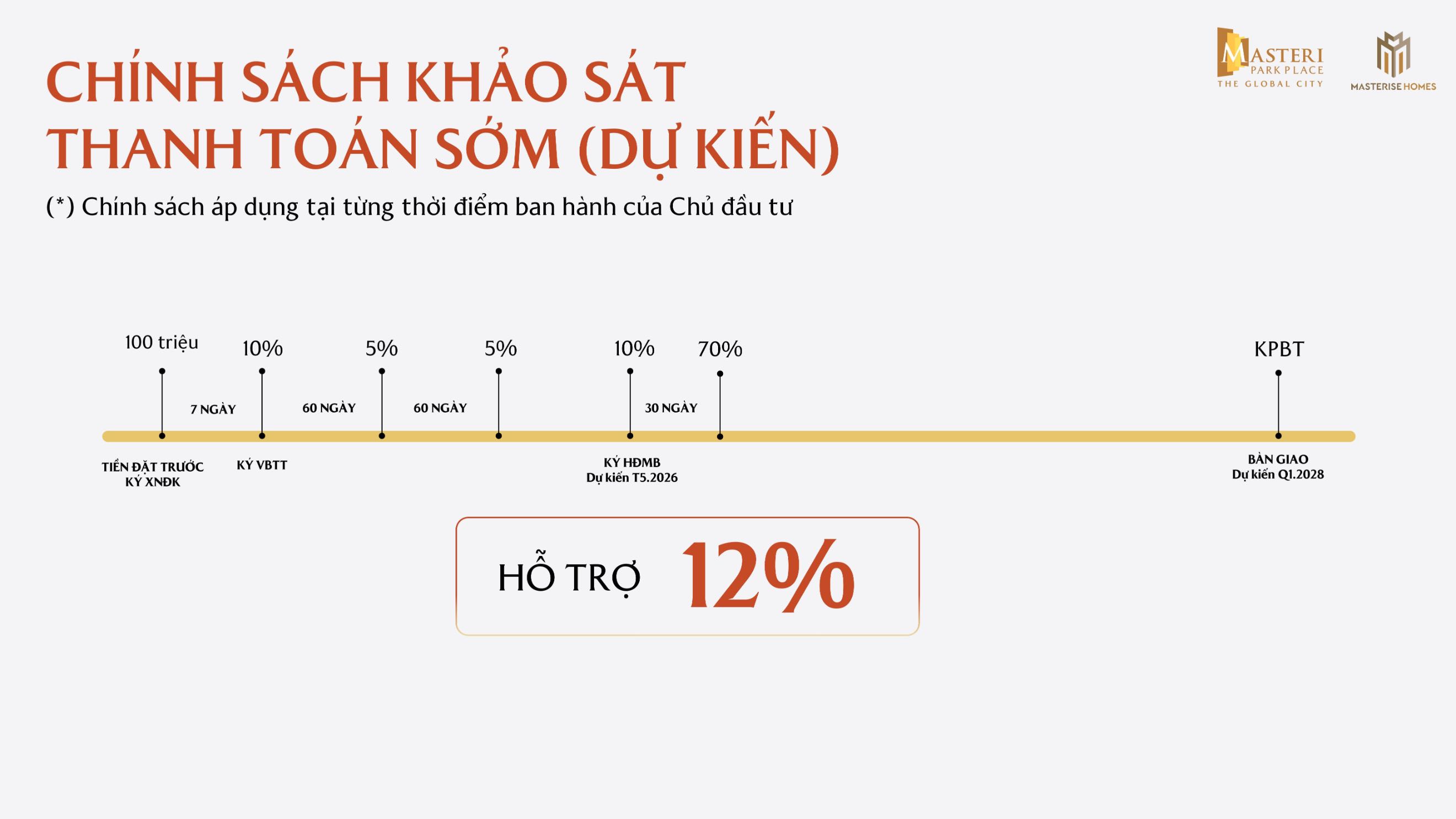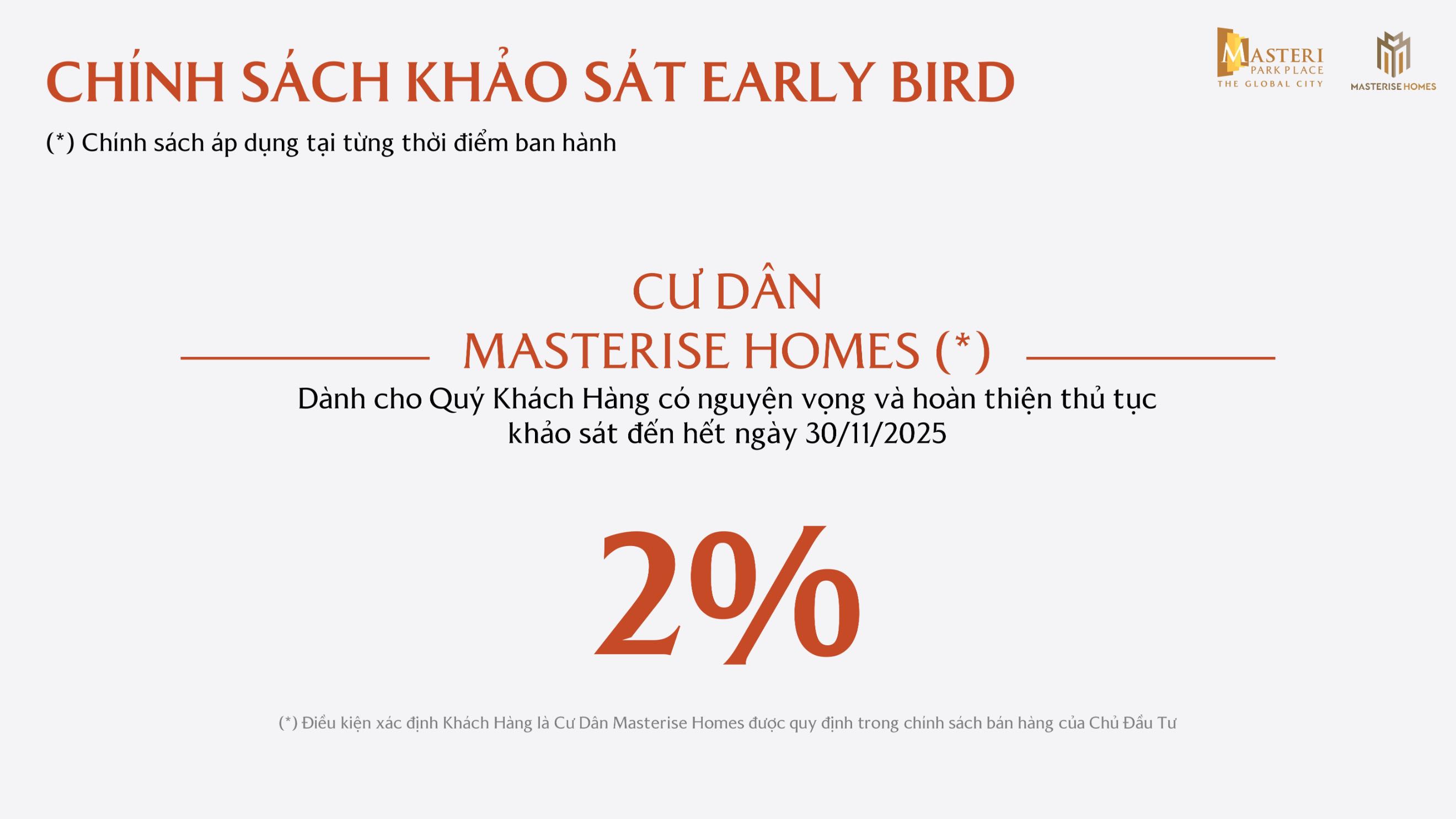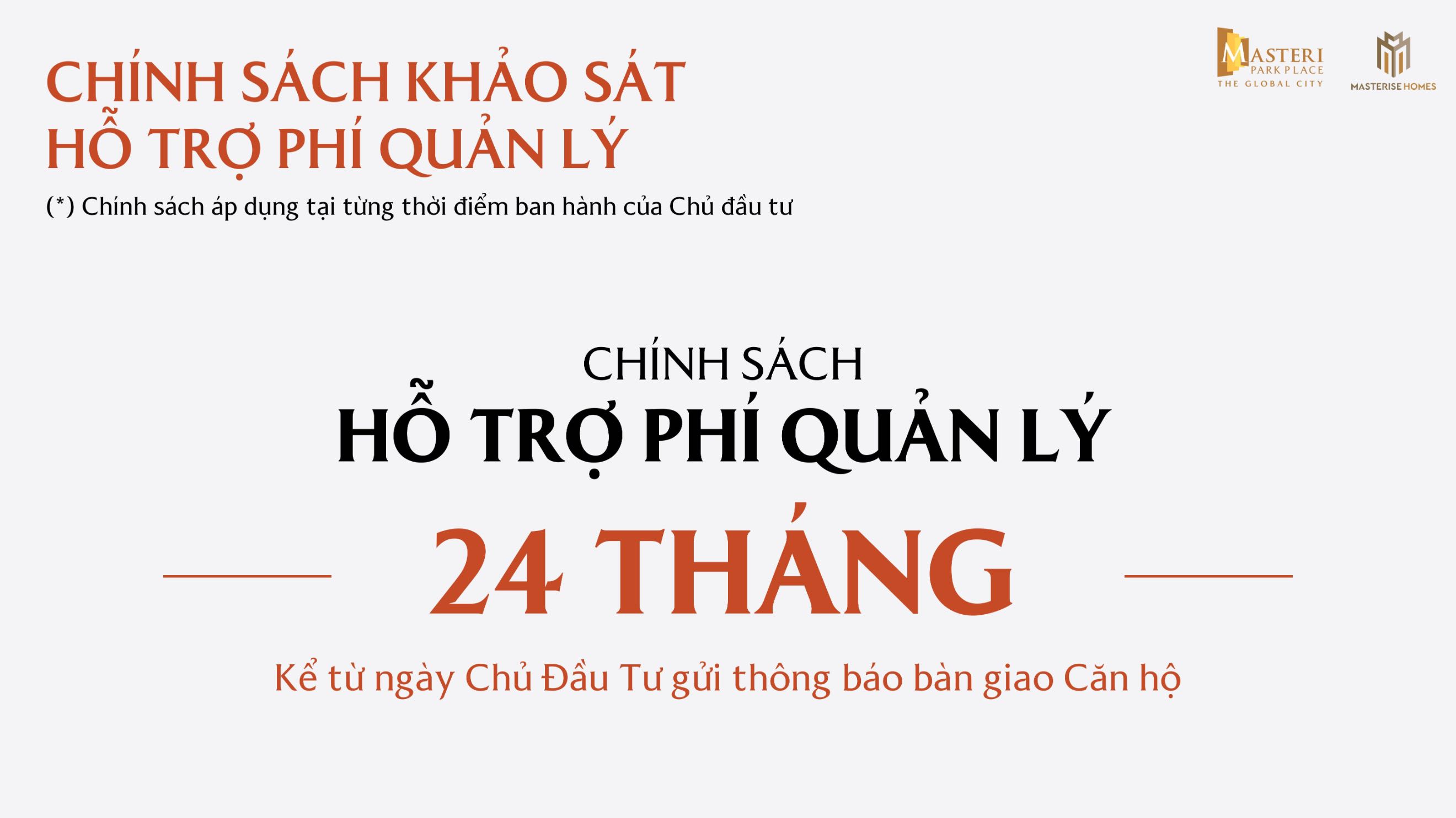 Chủ đầu tư Masterise Homes đã đưa ra các chính sách ưu đãi dành cho khách hàng khi mua căn hộ Masteri Park Place – The Global City