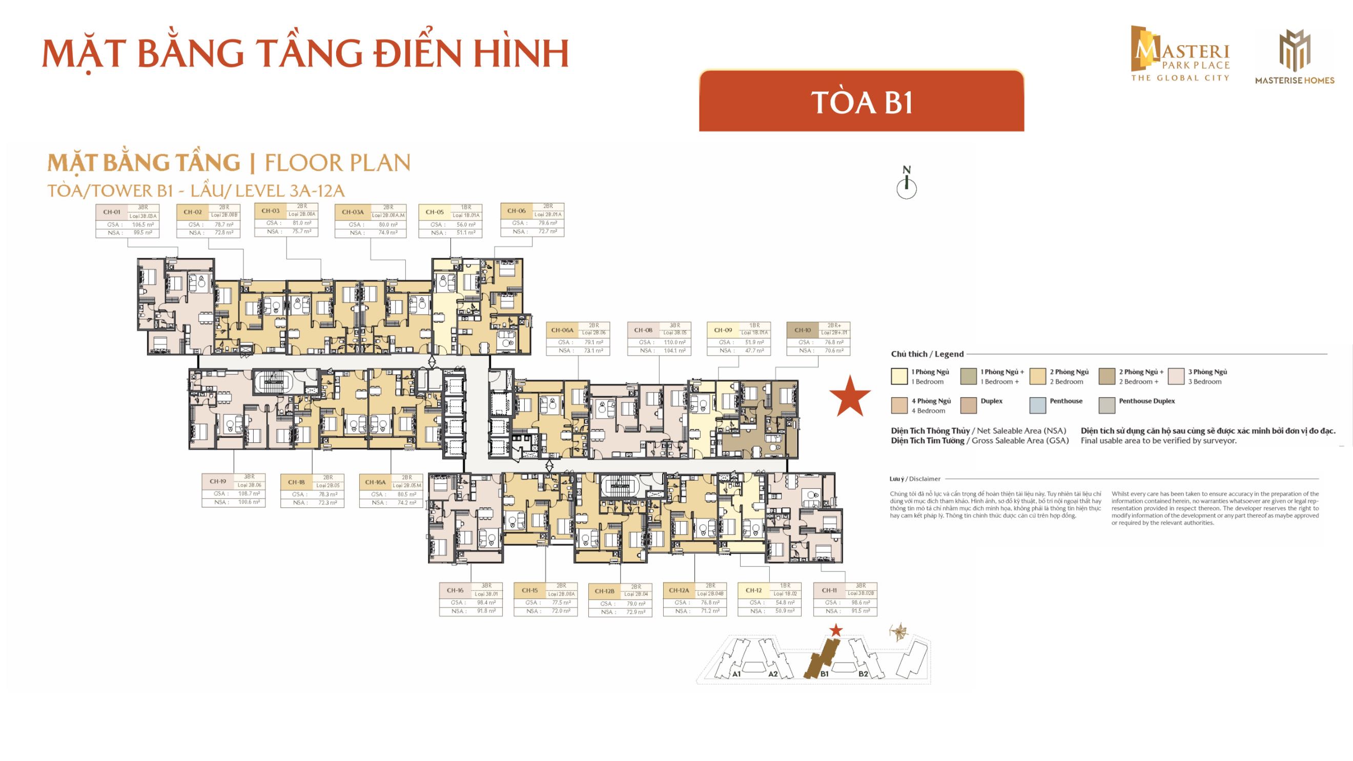 | Loại hình: | + 1PN: 54,8m2 + 2PN: 77,5 – 81m2 + 2PN+: 76,8m2 + 3PN: 98,6m2 + 4PN: 128,5m2 + Căn hộ Duplex: 87,9 – 109,1m2 + Căn hộ Duplex tầng 1,2: 88,4 – 92,3m2 |