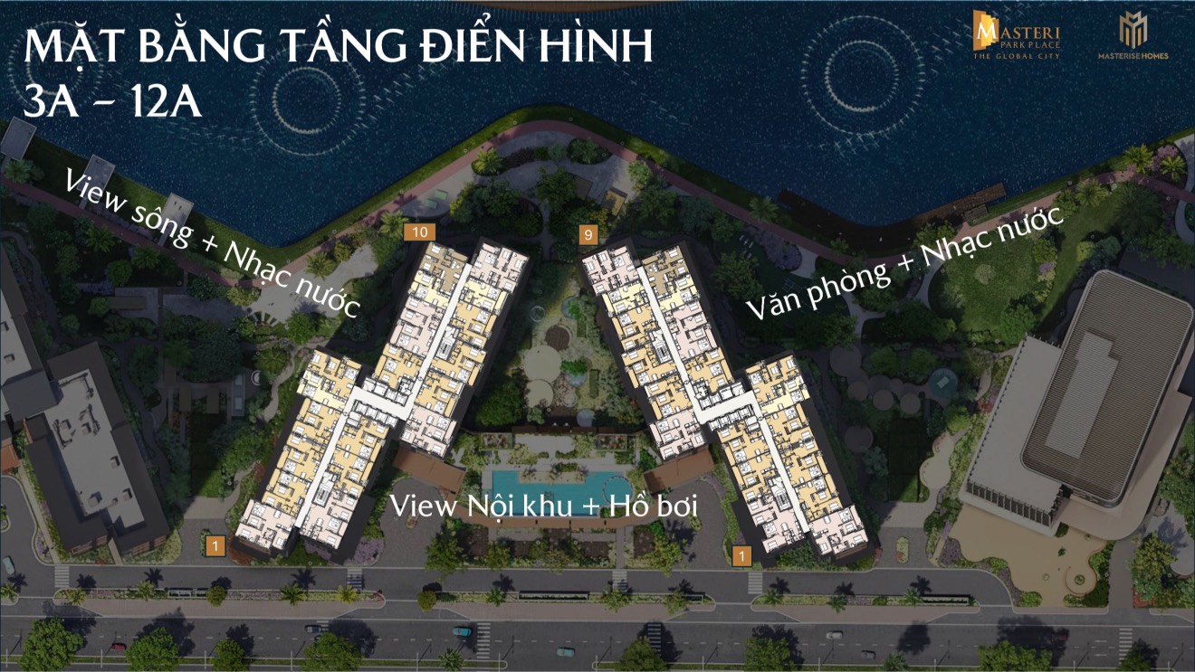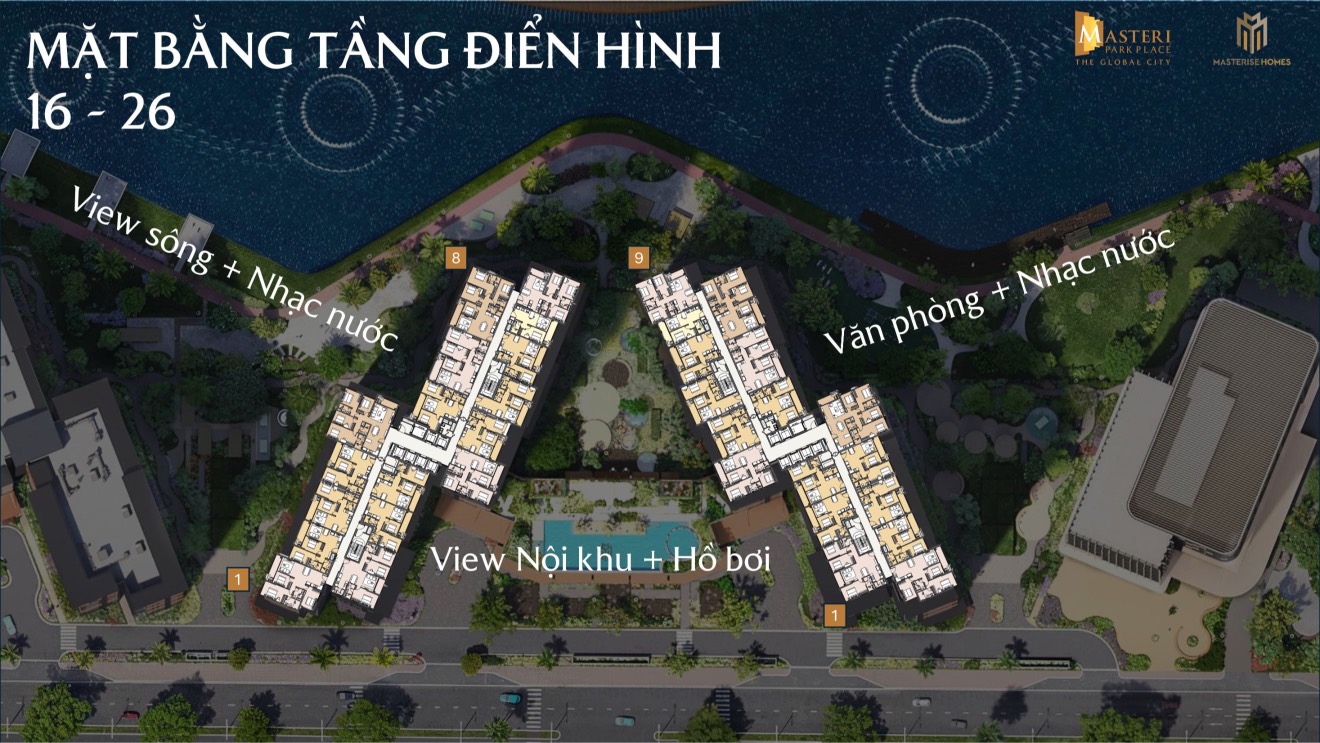 Masteri Park Place sắp mở bán 2 cụm toà tháp: Cụm toà A (24 tầng); Cụm toà B (27 tầng); 3 tầng khối đế; 2 tầng hầm đổ xe liên thông cùng nhiều loại căn hộ để đáp ứng cho từng nhu cầu của khách hàng: