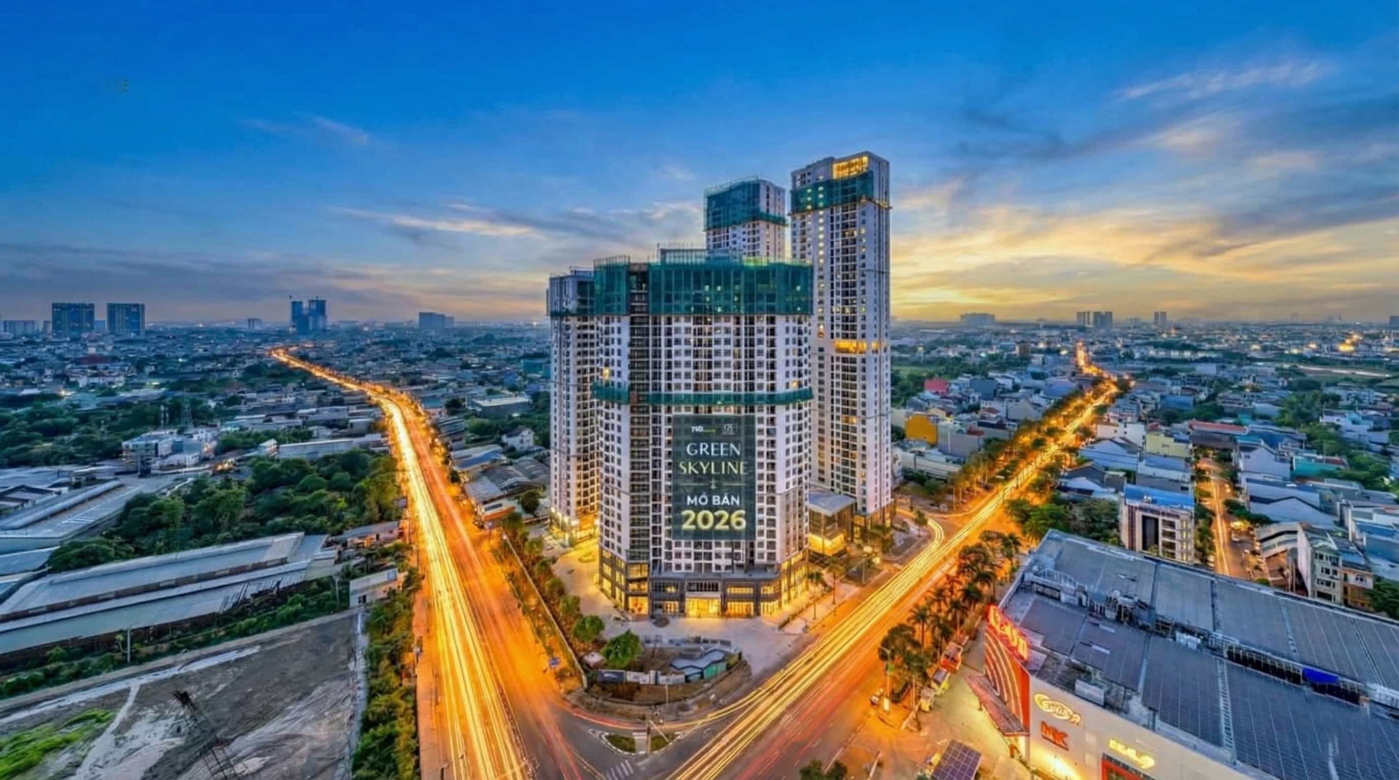 Dự án Green Skyline do TBS Land (thành viên TBS Group) phát triển đang khẳng định vị thế biểu tượng mới tại cửa ngõ phía Đông TP.HCM. Tọa lạc tại giao lộ Quốc lộ 1K và GS1, phường Đông Hòa, TP. Dĩ An, Bình Dương. Dự án Green Skyline được thiết kế bởi Vertical Studio – đơn vị danh tiếng, kết hợp cảnh quan bởi LJ Group, mang phong cách city resort hiện đại với mật độ xây dựng thấp chỉ 36%. Cung cấp 1.296 căn hộ đa dạng (1-3 phòng ngủ), 45 shophouse khối đế cùng penthouse, duplex cao cấp.