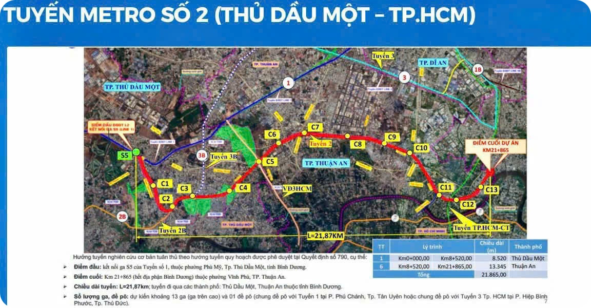 | Đòn bẩy hạ tầng | 3 dự án lớn đồng loạt triển khai: QL13 mở rộng, Metro số 2, Vành đai 3. |