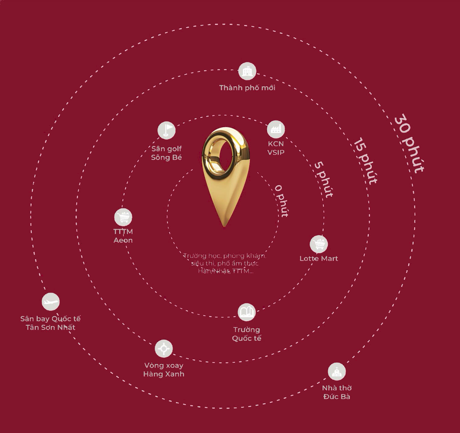 | 5 phút | KCN VSIP 1, AEON Mall Bình Dương, Sân Golf Sông Bé |